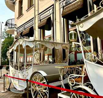 Отметили свадьбу 25 мая 2024 года. Гости отметили роскошный, но не вычурный интерьер зала. Приятно порадовал музыкальный... комплимент во время фуршета. Красивая подача блюд, вкусные закуски и соусы. Уютная атмосфера города. Рояль рядом с рестораном стал местном притяжения для нашей молодежи. Свадьба прошла вкусно и стильно.